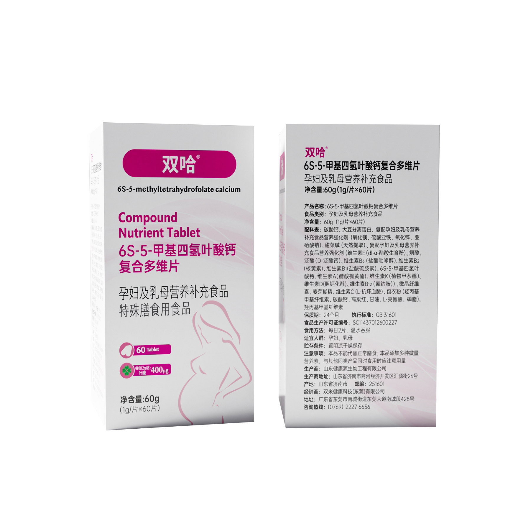 双哈®6S-5-甲基四氢叶酸钙复合多维片孕妇备孕(活性叶酸60片)*买五送一原品